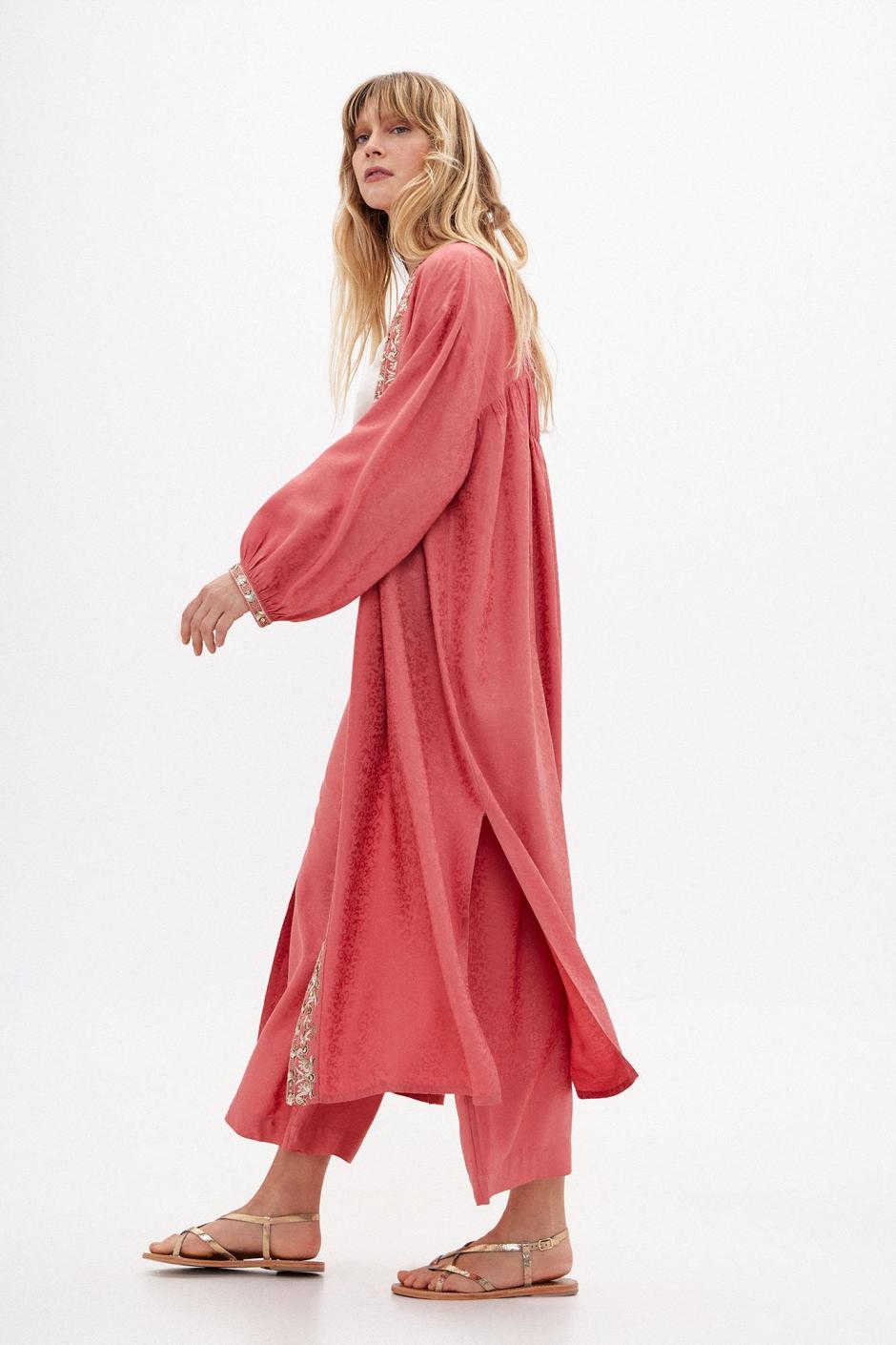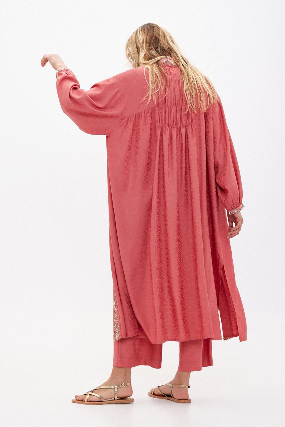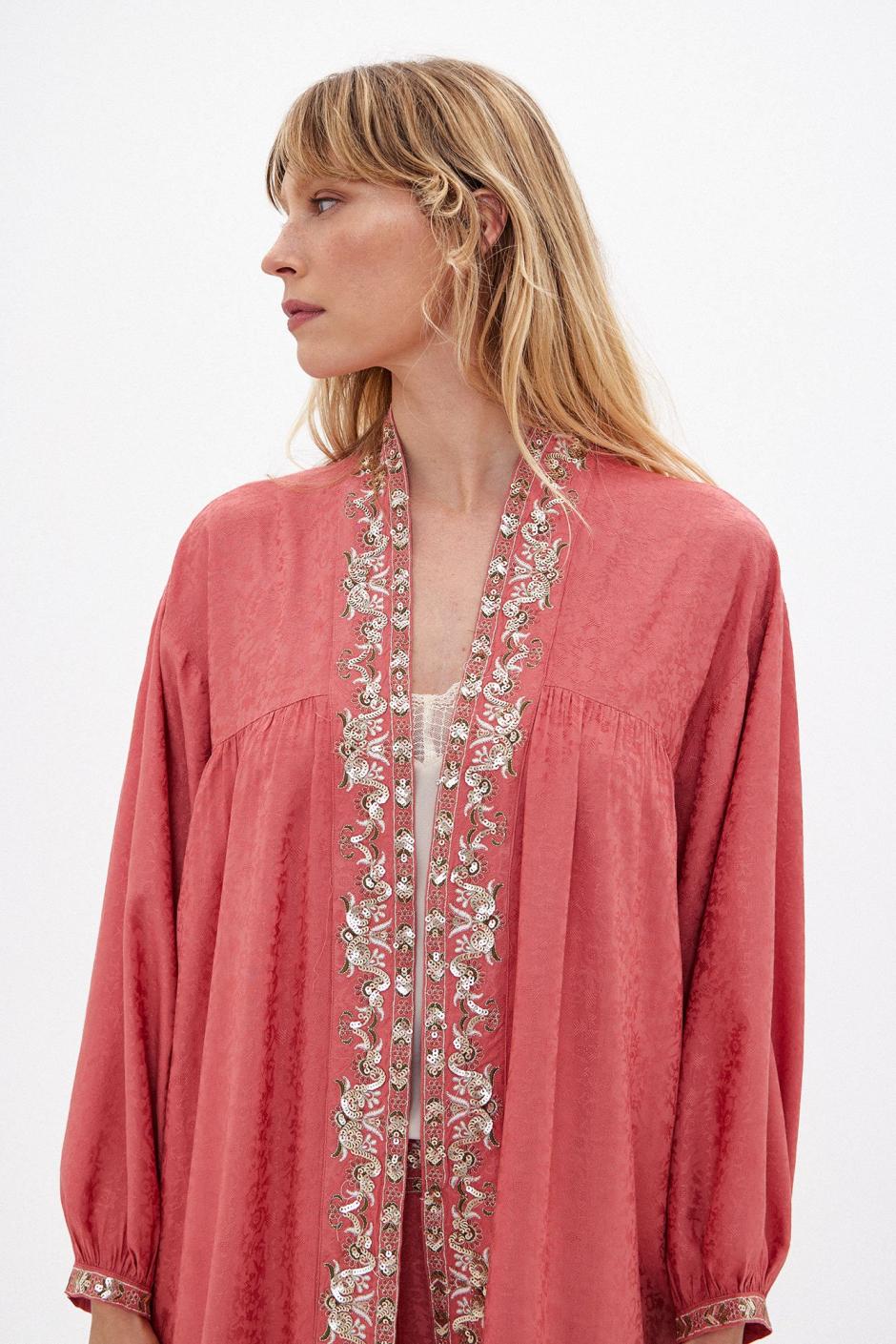 Hoss Intropia Cali. Kimono Largo De Jacquard Rosa | Mujer Abrigos Y Chaquetas