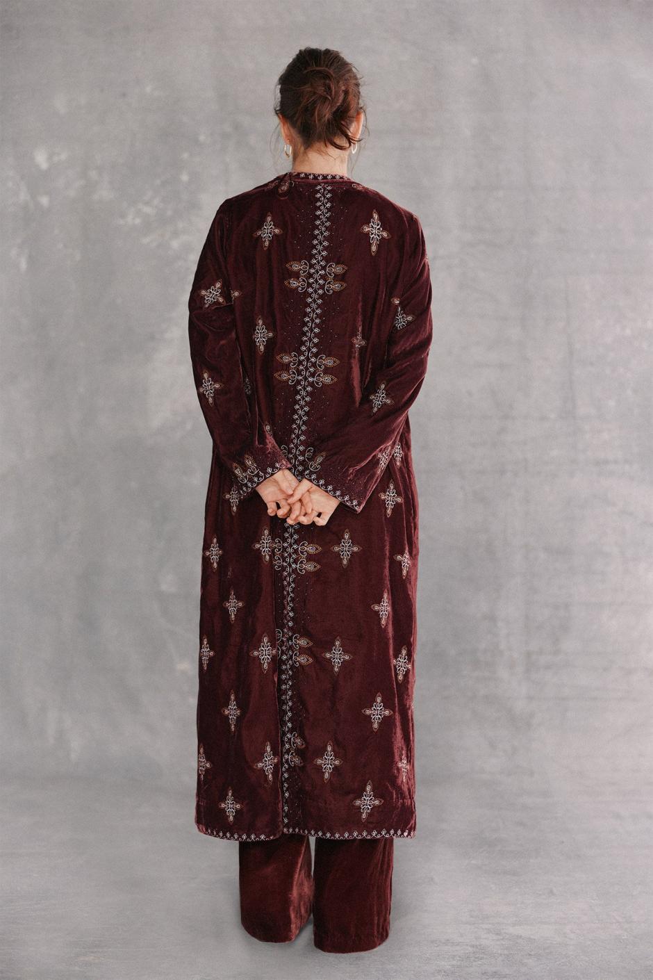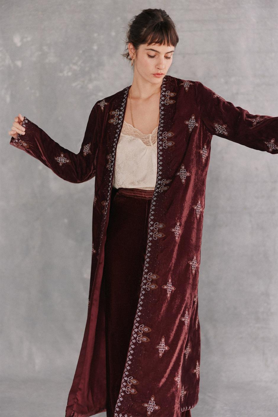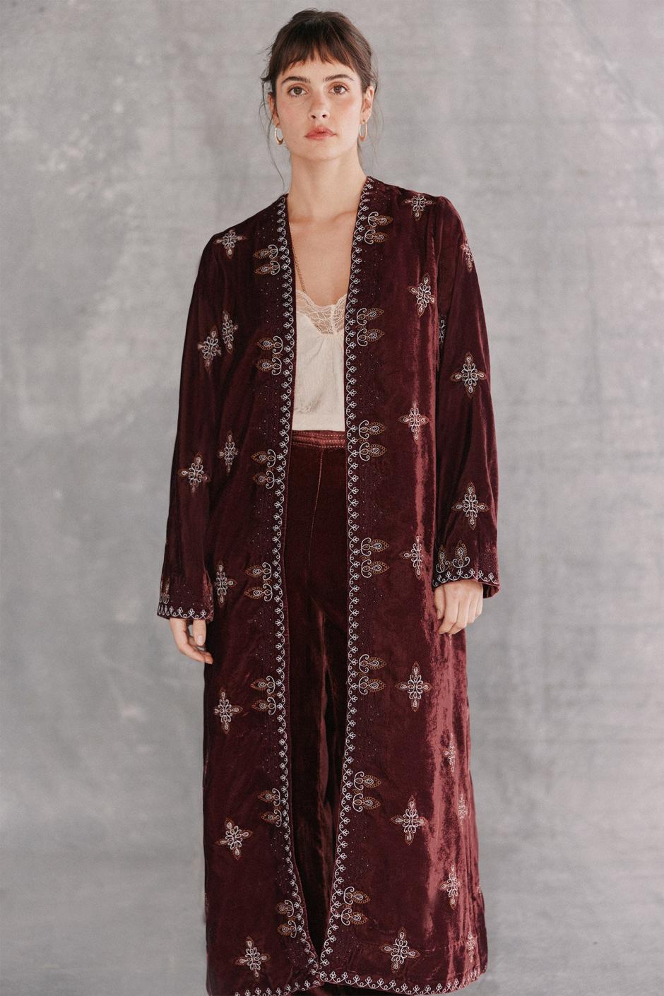 Hoss Intropia Estrella. Kimono Largo Terciopelo Bordado Granate | Mujer Vestidos Y Monos
