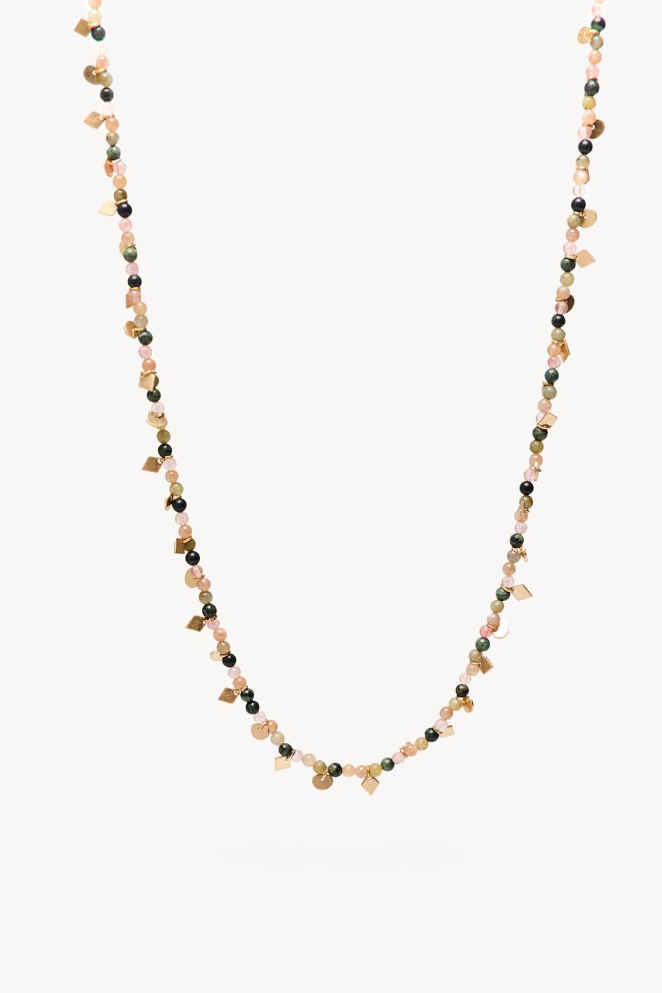 El collar LÍA de Hoss Inropia es un collar largo donde seducen unas piedras y cristales de varios colores combinados entre allo y a su vez intercalados con pequeñas moneditas metálicas bañadas en oro. Un collar multiposición que podrás llevarlo con dos vueltas o con una y aportará a tus conjuntos un estilo innegable.Cuanta con medalla grabada con el logo de Hoss Intropia.