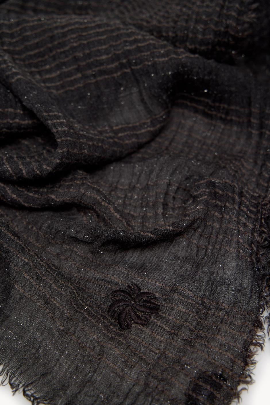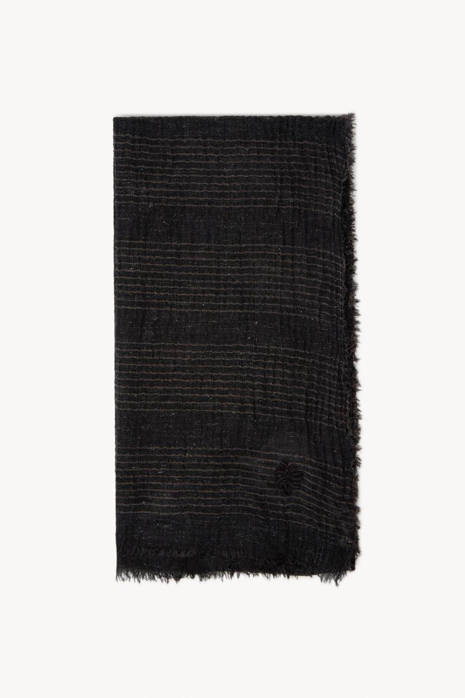 Déjate tentar por el adorable fular LUCILA. Confeccionado en tejido con estructura ligeramente texturada y entramado con finos hilos de lurex. Destaca sus bordes desflecados y logo bordado. Un fular que complementará tus looks para cualquier ocasión.