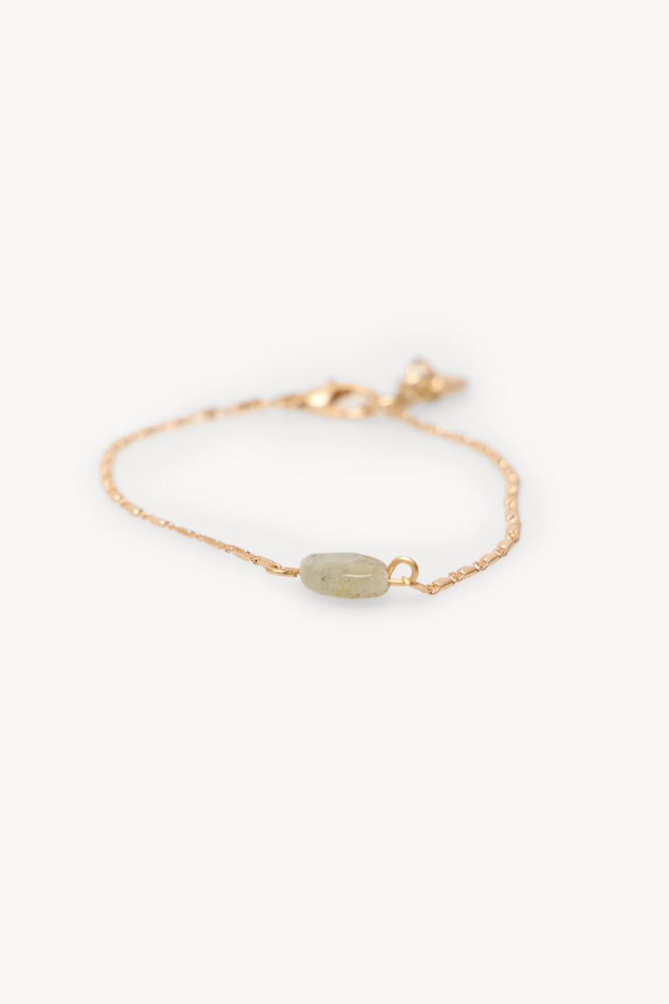 La pulsera MILLIE de delicada cadena bañada en oro con con piedra semi preciosa de Aventunrina verde . La Aventunrina verde es la piedra de la SUERTE, LIDERAZGO y el BUEN HUMOR. Entre sus propiedades, este mineral verde aporta entusiasmo, aceptación y confianza.Además, aumenta el liderazgo, la creatividad y el buen humor.Un detalle inigualabe para regalar a cualquier persona cercana.