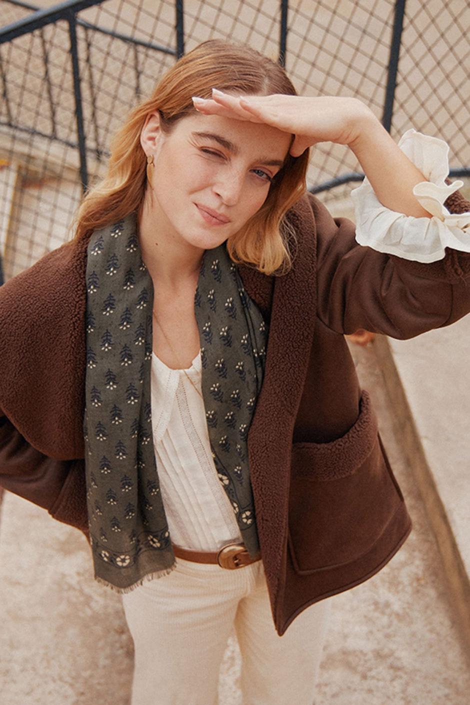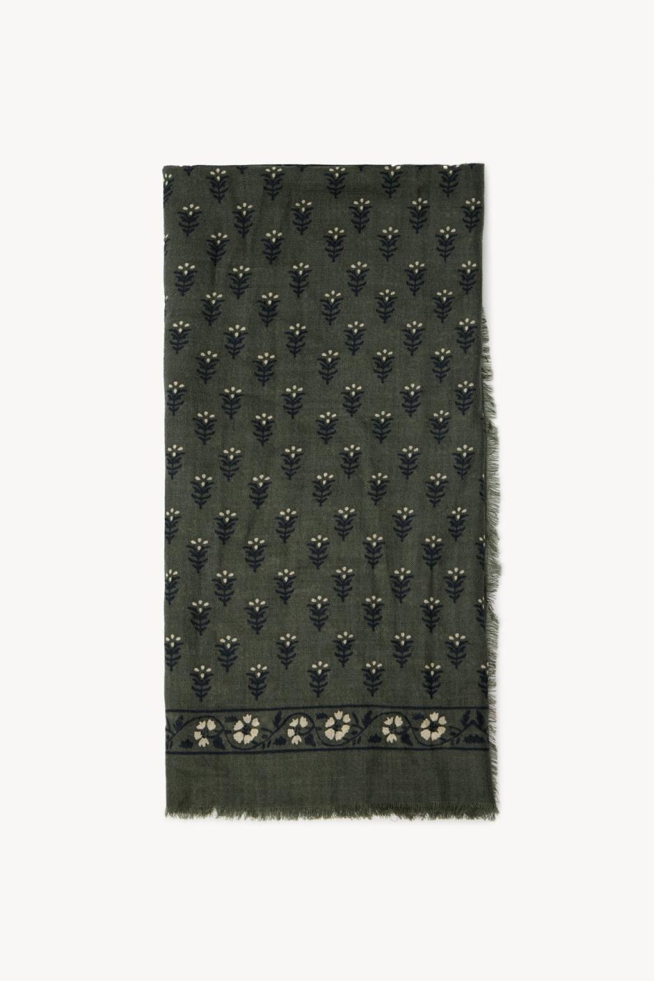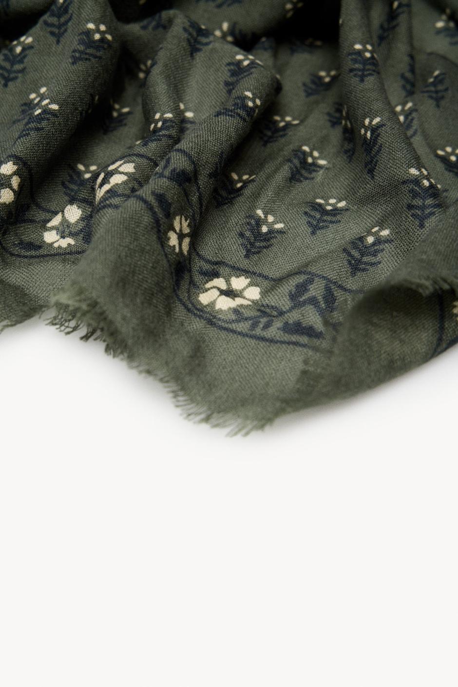 Déjate tentar por el adorable fular NICOLE. Confeccionado en lana y con un estampado tipo bandana de flores. Destaca sus bordes desflecados. Un fular que complementará tus looks en el día a día. Dos opciones de color.