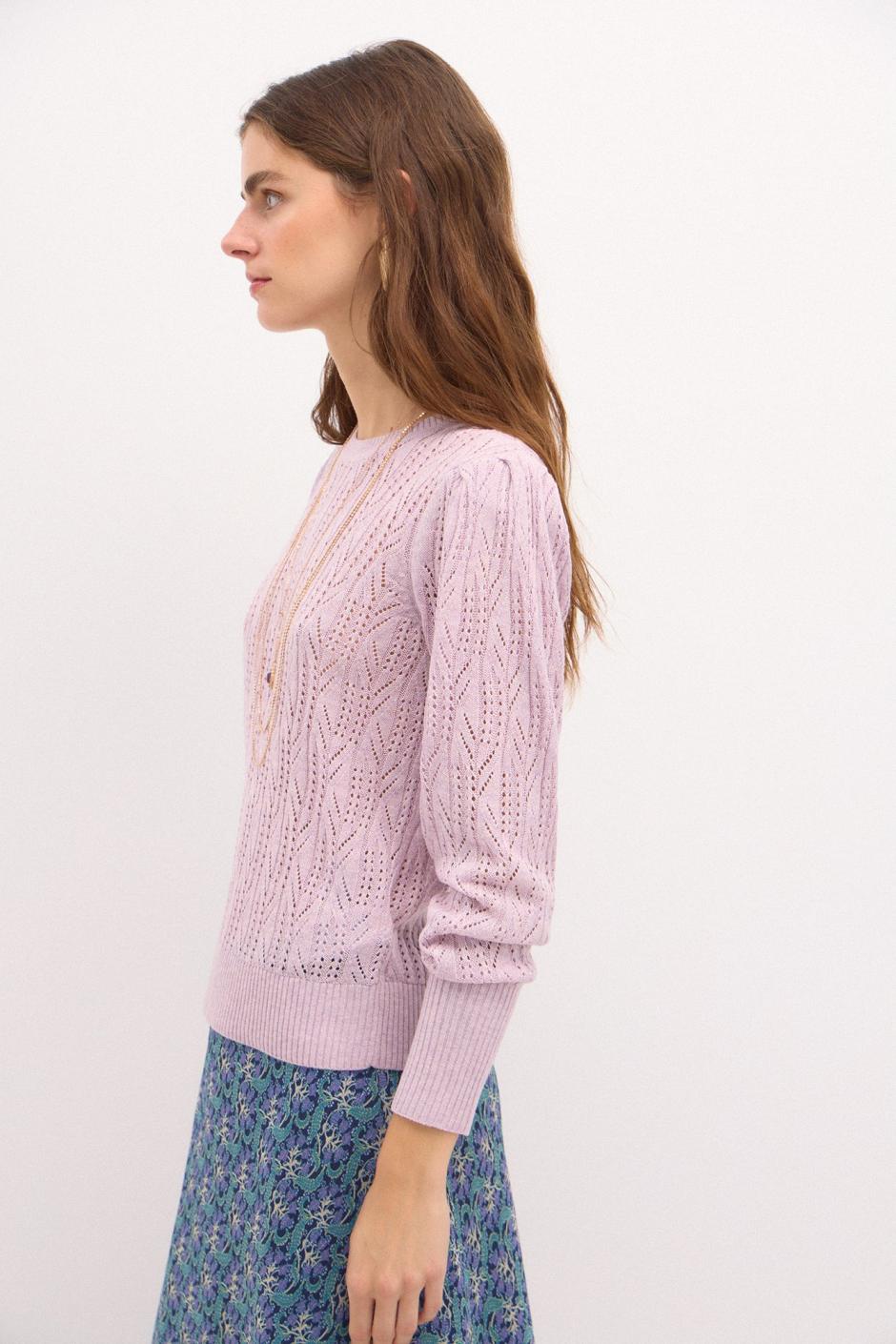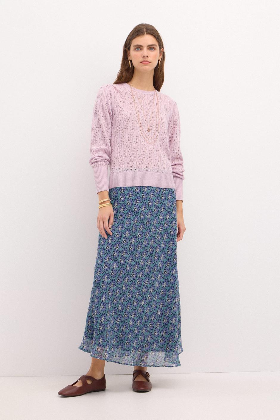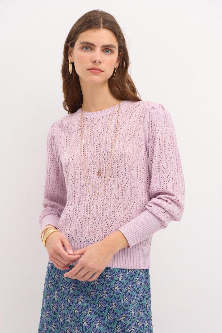 El jersey calado THAIS de Hoss Intropia destaca por su detalle de tejido calado con inspiración floral, hombros con volumen y canalé ancho en puño y bajo. Conformando de esta manera un jersey de lo más especial. Combínalo con todo tipo de faldas, jeans y pantalones.